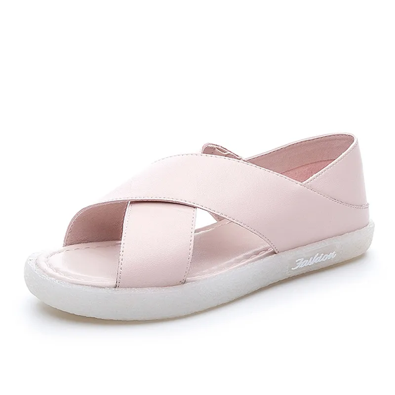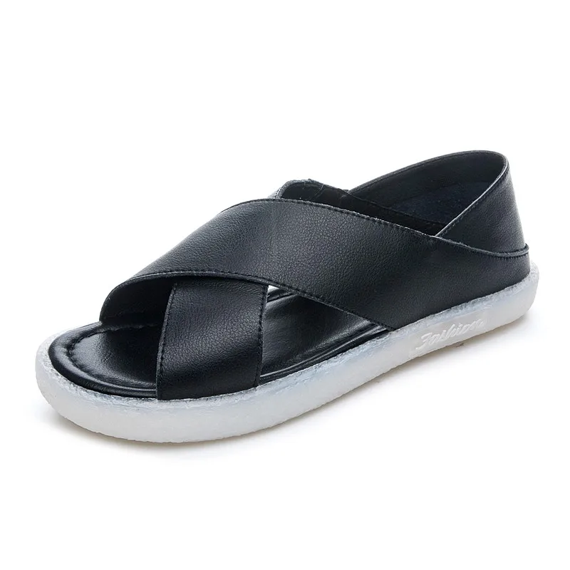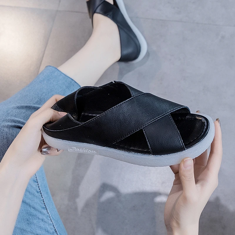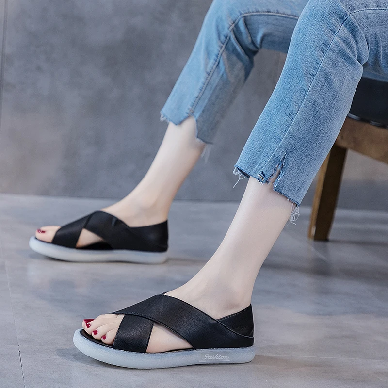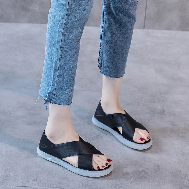 Женские сандалии; Новинка 2021 года; Летние мягкие сандалии из натуральной кожи на плоской подошве для девочек; Нескользящие женские сандалии...
