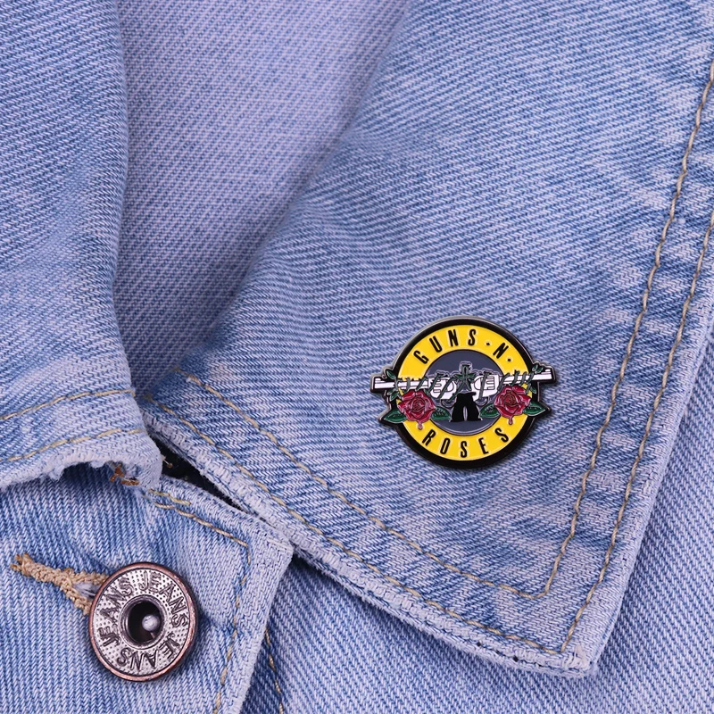 Пистолеты N Roses Группа брошь с логотипом значок НРГ эмали штырь хард-рок любителей музыки подарки