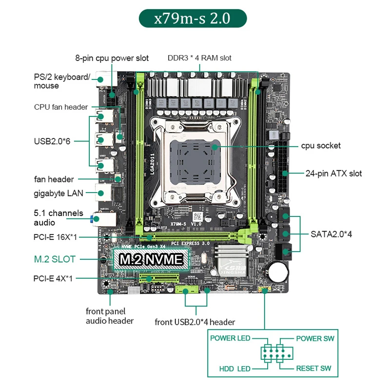Набор материнской платы X79 M S с LGA2011 combos Xeon E5 2630V2 CPU 4 шт. x 4 ГБ = 16 Гб памяти DDR3 ECC ОЗУ 1333 МГц NVME M.2 слот|Материнские платы| | АлиЭкспресс