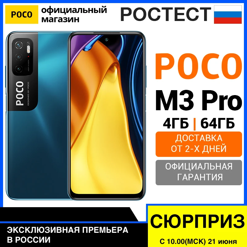 Смартфон POCO M3 Pro RU 64ГБ[РОСТЕСТ, официальная гарантия, доставка от 2 дней], Наслаждайся ✓Бесплатная доставка по всему миру! ✓Предложение ограничено по времени! ✓Удобный возврат! Наслаждайся ✓Бесплатная доставка по всему миру! ✓Предложение ограничено по времени! ✓Удобный возврат!