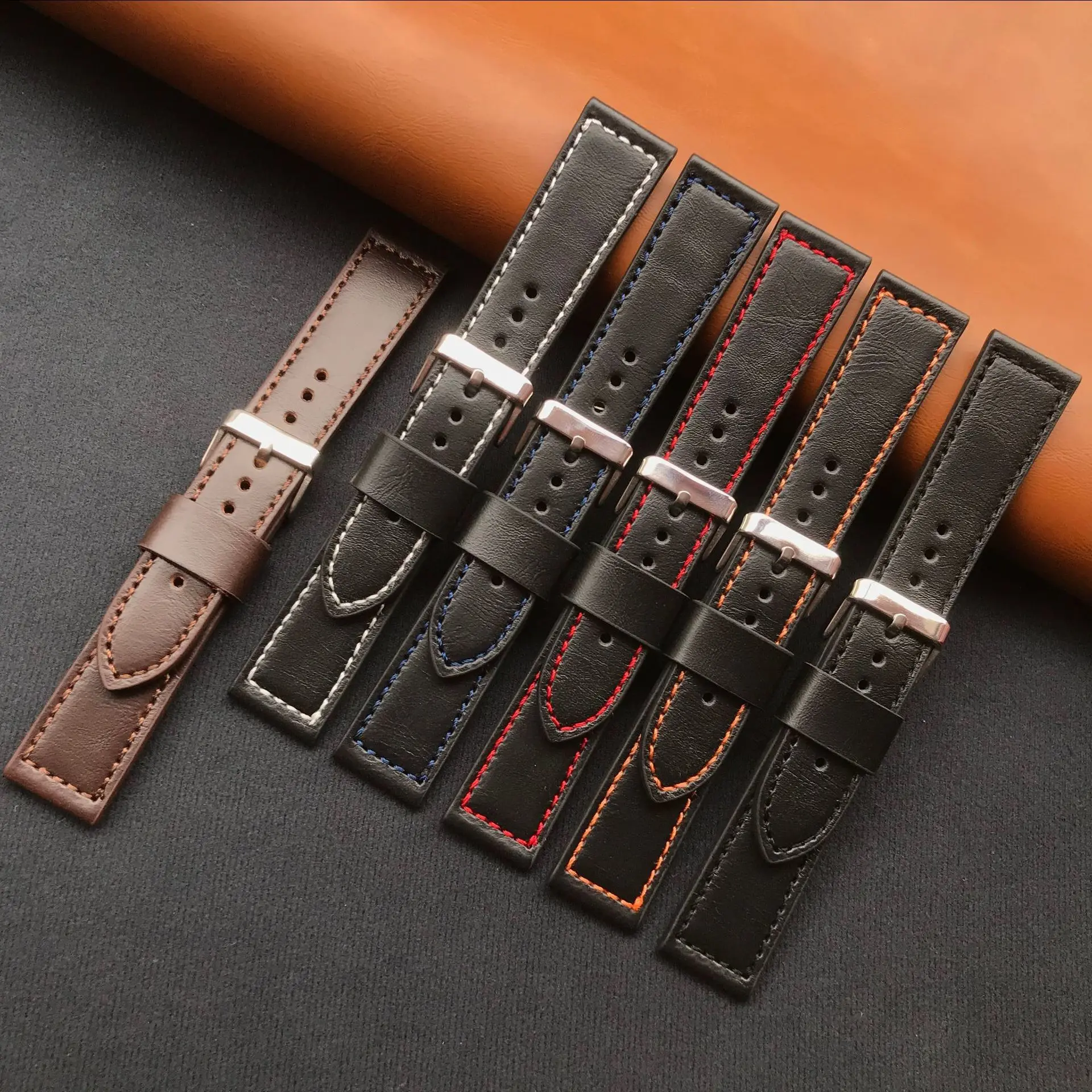Ремешок из нержавеющей стали для наручных часов, модный спортивный винтажный кожаный браслет с пряжкой, аксессуары для часов, 18 мм 20 мм 22 мм 24 мм