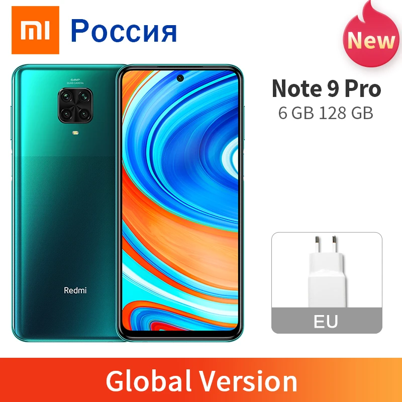 Global Version Xiaomi Redmi Note 9 Pro 6GB 128GB NFC Smartphone 6.67" Snapdragon 720 64MP Four Cameras 5020mAh 33W Fast Charger