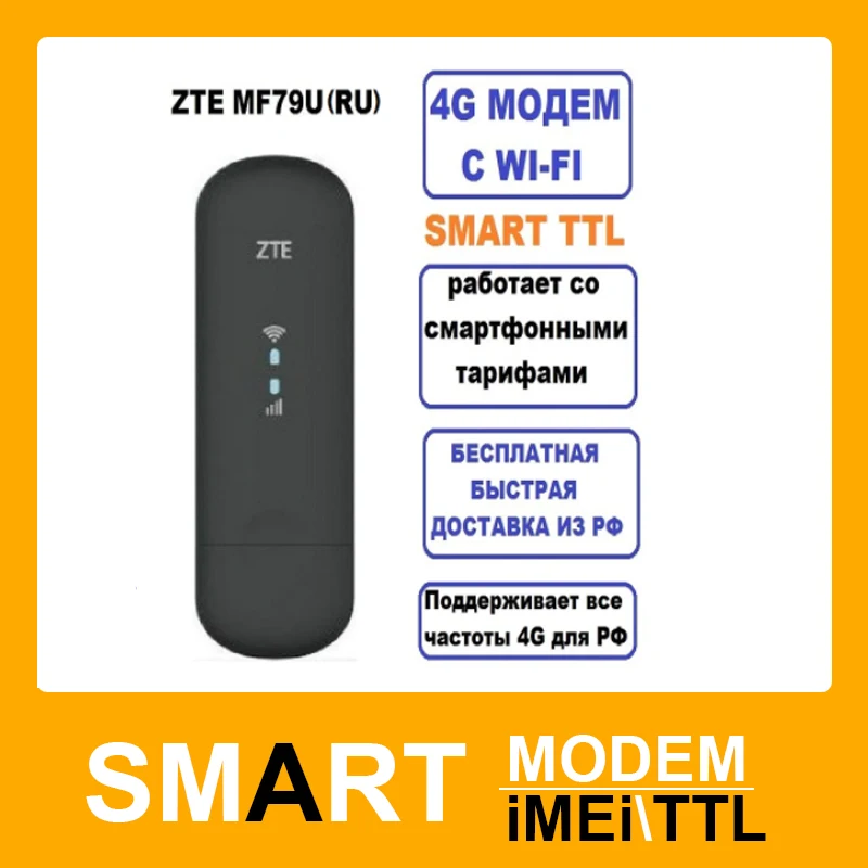 Разблокированный Wi Fi Модем ZTE MF79RU аналог E8372H 153 USB LTE 4G 3G 2G TS 9 под любого оператора сим карта в комплекте
