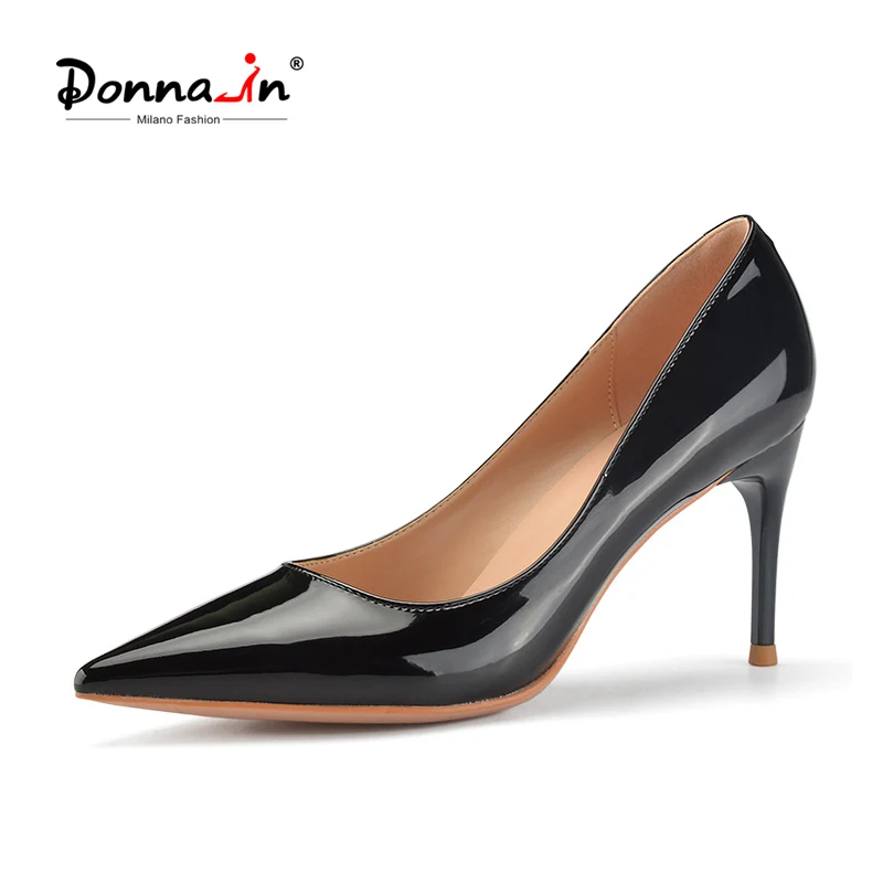 Donna-in/черная весенняя обувь из лакированной кожи для женщин; Женская Офисная Повседневная обувь; Каблук 8 см; Слипоны на резиновой подошве, Наслаждайся ✓Бесплатная доставка по всему миру! ✓Предложение ограничено по времени! ✓Удобный возврат!