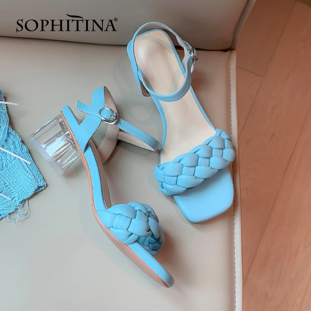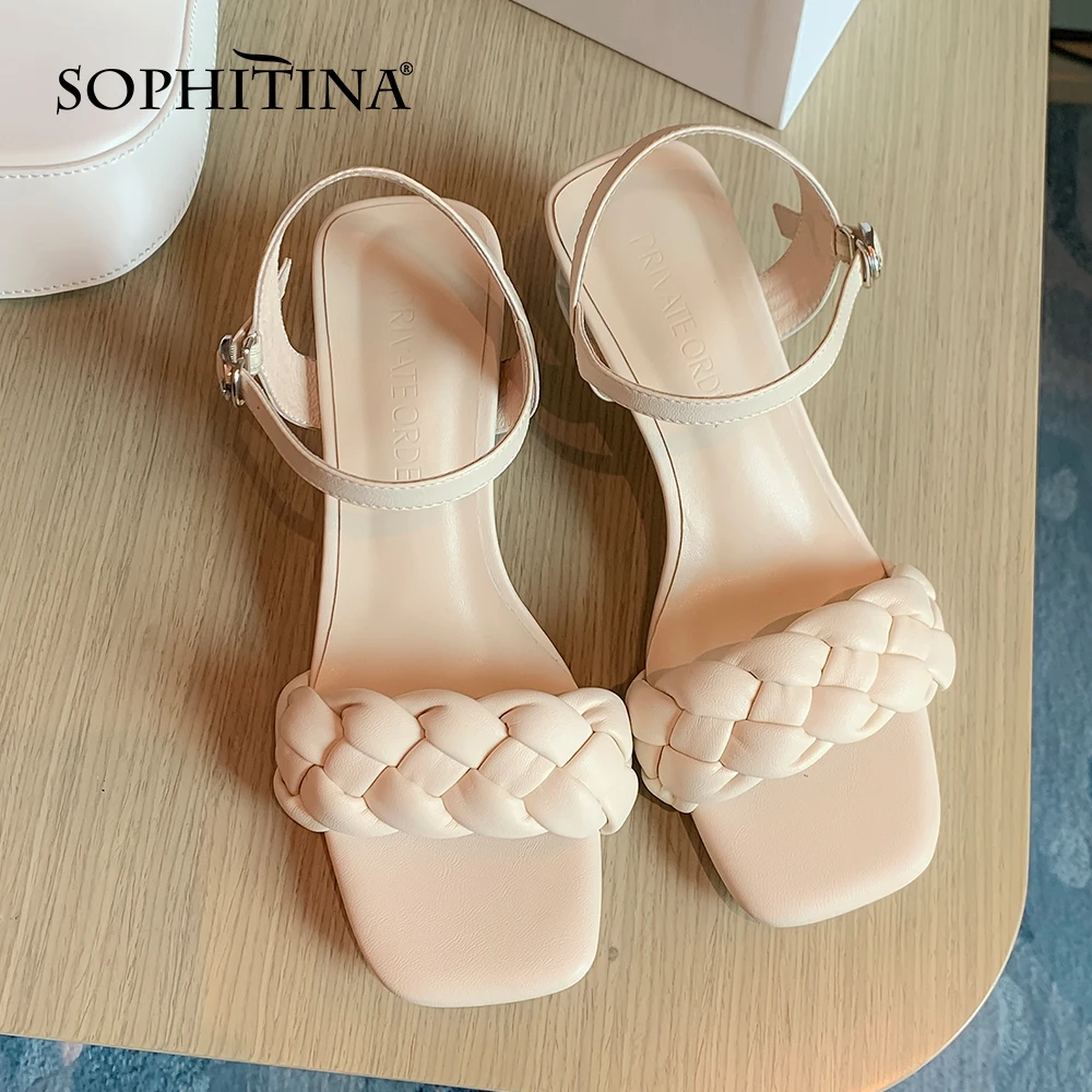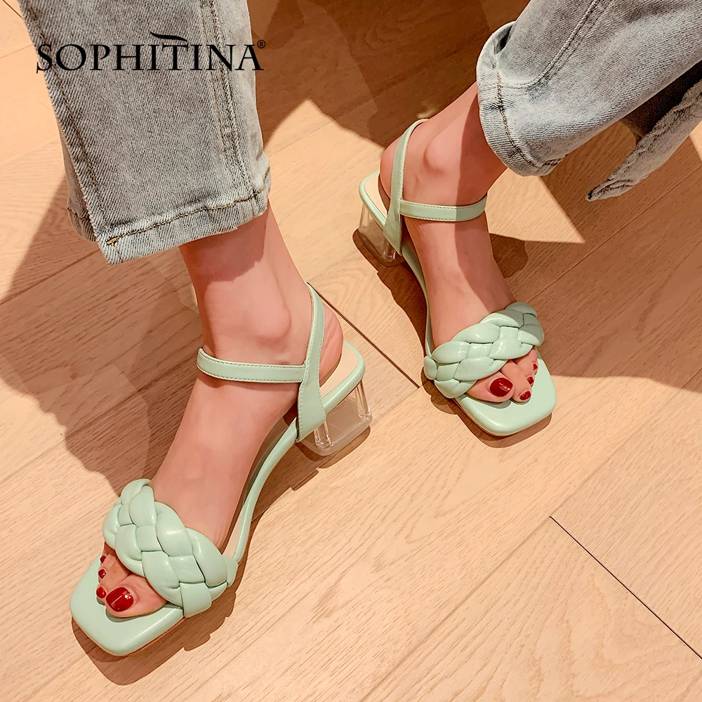 Сандалии SOPHITINA женские на каблуке, модные кожаные босоножки с переплетением, с кристаллами, с открытым носком, удобные универсальные, милые туфли для поездок, AO895, Наслаждайся ✓Бесплатная доставка по всему миру! ✓Предложение ограничено по времени! ✓Удобный возврат!