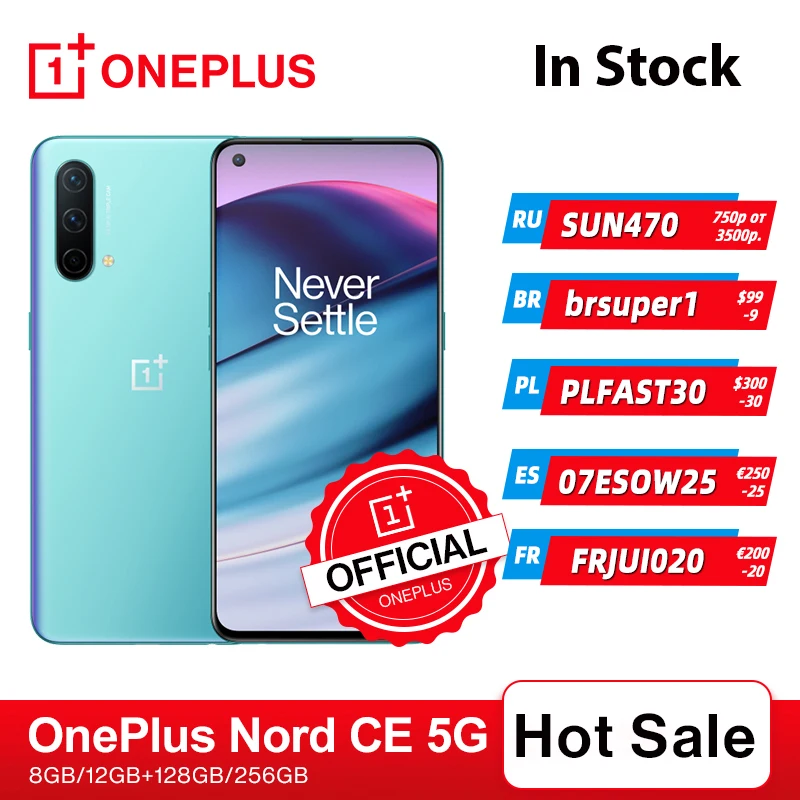 Мировая премьера OnePlus Nord CE 5G EB2103 Смартфон 8 ГБ 128 ГБ и 12 ГБ 256 ГБ Snapdragon 750G Warp Charge 30T Plus 90 Гц AMOLED OnePlus Official Store; код: SUN470(P3500-750) SUN330(P2500-330) LET150(P1000-150)