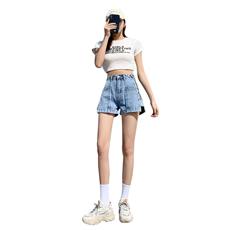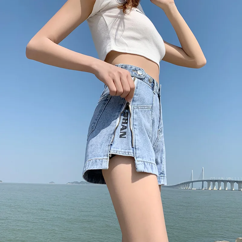 Pantalones cortos de mezclilla para mujer, Falda corta holgada de verano, de cintura alta coreana, piernas anchas delgadas, calados con letras, informales, 2021,Consigue increíbles descuentos en artículos de vendedores chinos y de todo el mundo. ¡Disfruta de envíos gratis, ofertas por tiempo limitado, devoluciones sencillas y protección al comprador!\nDisfruta de las siguientes ventajas: ✓ Envío gratuito a todo el mundo ✓ Oferta disponible durante un tiempo limitado ✓ Devolución sencilla\n