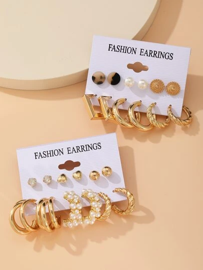 Free Returns ✓ Free Shipping On Orders $49+ ✓. 12pairs Faux Pearl & Heart Decor Earrings- Earrings at SHEIN.