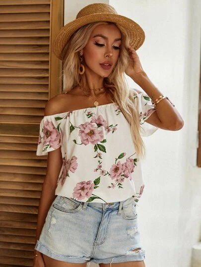 To find out about the Floral Print Off The Shoulder Top at SHEIN, part of our latest Women Blouses ready to shop online today! Free Shipping On £35+✓ Free Return - 60 Days✓ 1000+ New Dropped Daily✓ Get £3 Off First Order!✓
