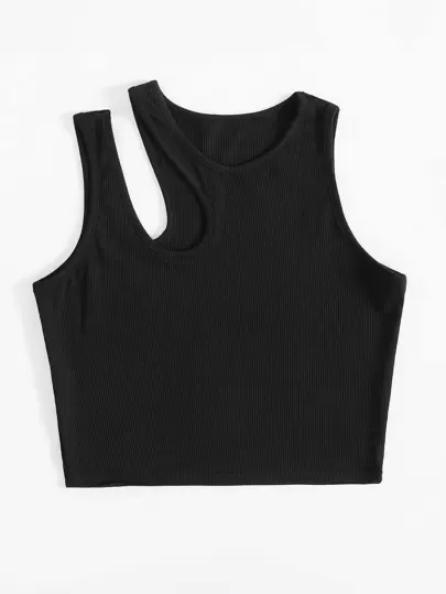Rippenstrick Crop Tank Top mit asymmetrischem Kragen bei SHEIN entdecken. Sie könnenn Ein Teil unserer neuesten Damen Tank Tops & Camis ab heute online kaufen.