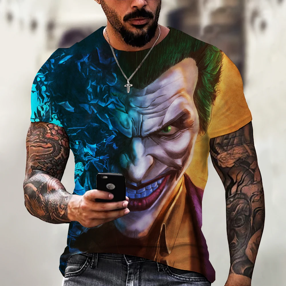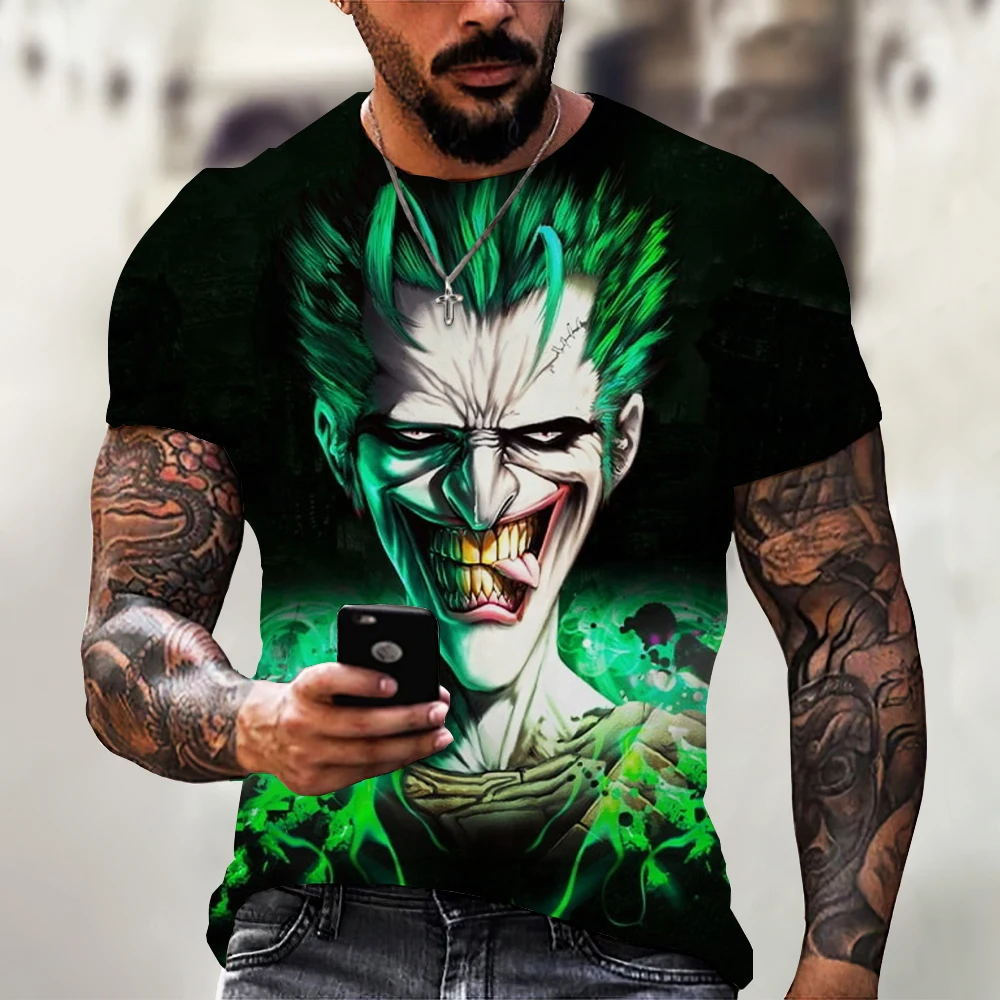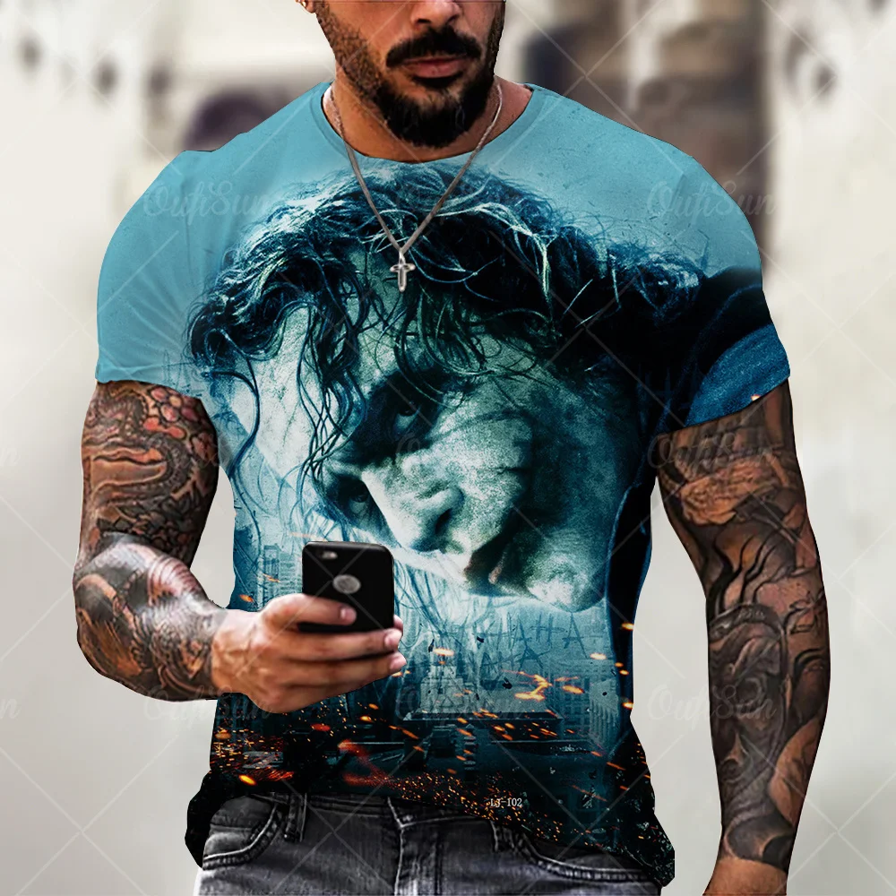 Футболка мужская с 3D-принтом, городской тренд, короткий рукав, оверсайз, уличный стиль, рок, хип-хоп, клоун, с принтом лица Джокера, лето