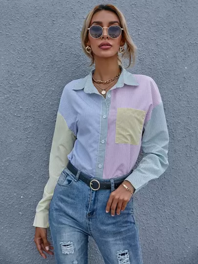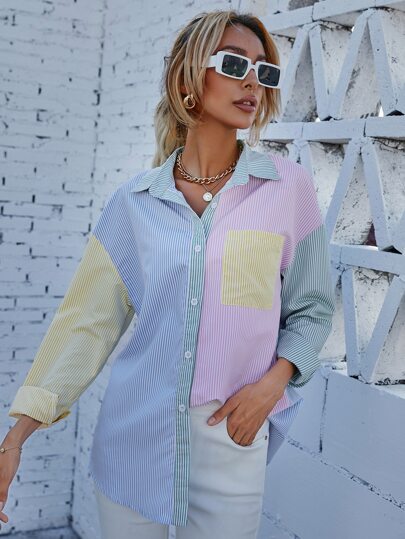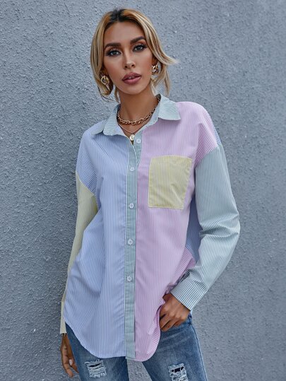 To find out about the Striped Print Colorblock Drop Shoulder Blouse at SHEIN, part of our latest Women Blouses ready to shop online today!