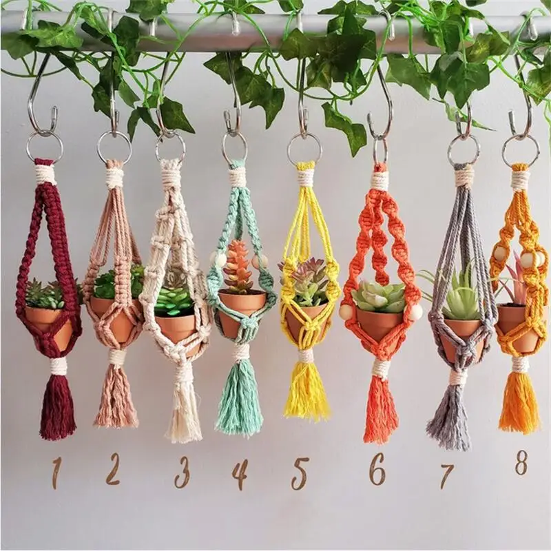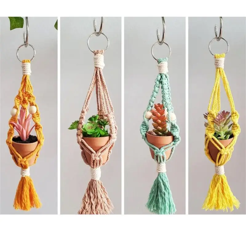 Various Colours Macrame Air Plant Holder Bohemian Style Cotton Hand Weaving Hanging Planter For Living Room Bedroom Decoration