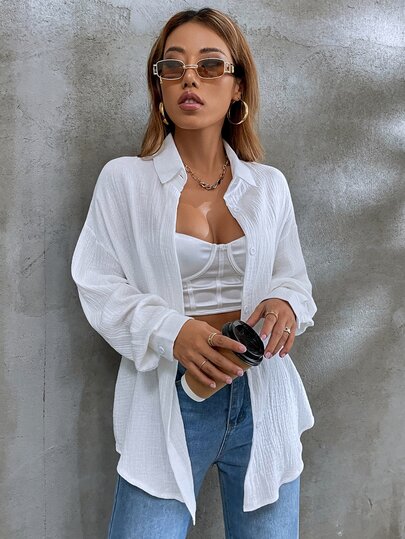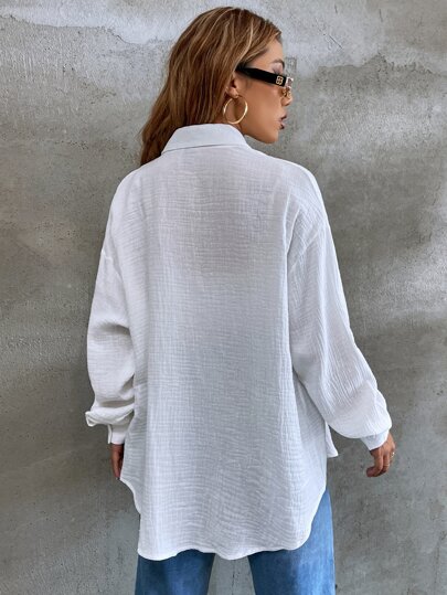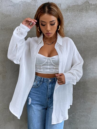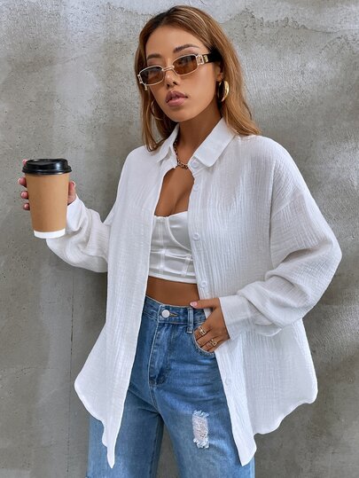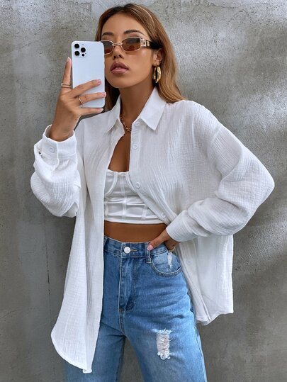 To find out about the Solid Button Front Oversized Shirt at SHEIN, part of our latest Women Blouses ready to shop online today!