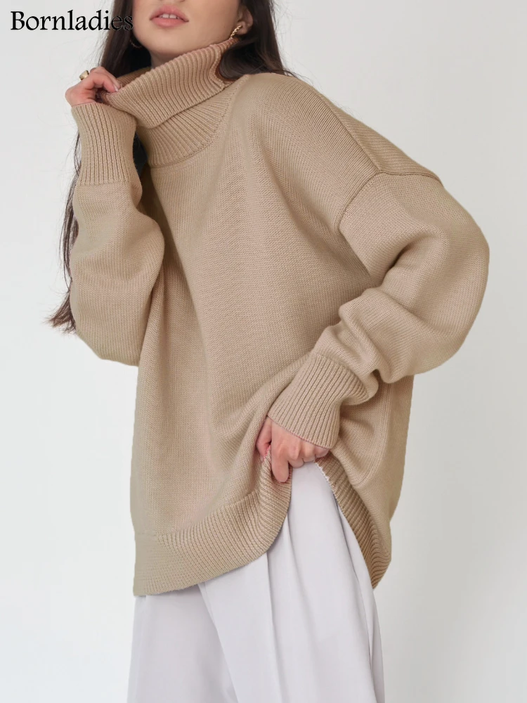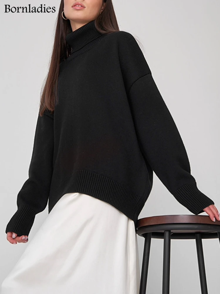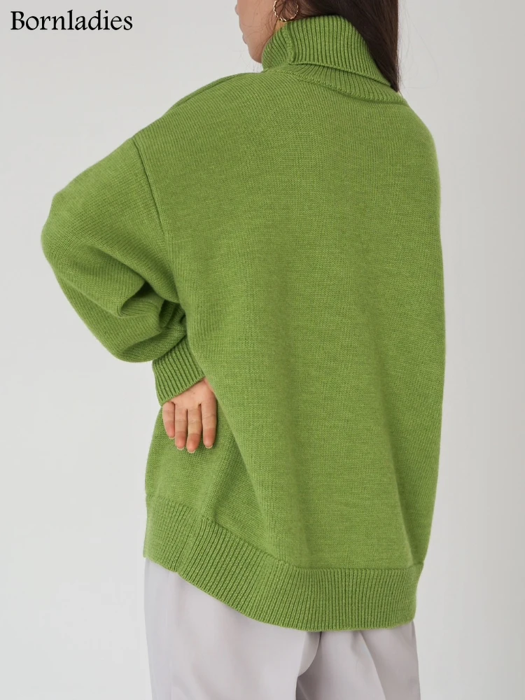 Bornladies женский свитер с высоким воротником шикарный осенне-зимний плотный теплый пуловер Топ оверсайз Повседневный Свободный вязаный джемпер для женщин