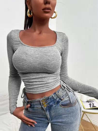 SHEINSXYDrawstringSideScoopNeckTee