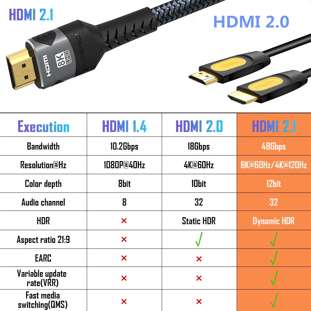 8K HDMI-совместимый кабель 4K @ 120 Гц 8K @ 60 Гц HDMI 2,1 кабель 48 Гбит/с адаптер для RTX 3080 eARC HDR видеокабель для ПК ноутбука ТВ приставки PS5, Наслаждайся ✓Бесплатная доставка по всему миру! ✓Предложение ограничено по времени! ✓Удобный возврат! Наслаждайся ✓Бесплатная доставка по всему миру! ✓Предложение ограничено по времени! ✓Удобный возврат!