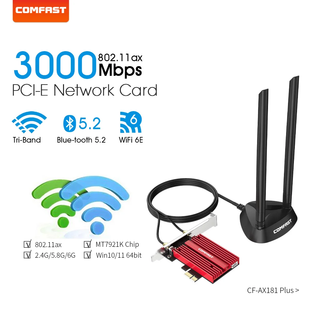 3000 Мбит/с Wi-Fi 6E адаптер беспроводной PCI-E Bluetooth 5,2 двухдиапазонный сетевой Wi-Fi PCIe адаптер карты 2,4G/Φ 802.11ax для ПК - купить по выгодной цене