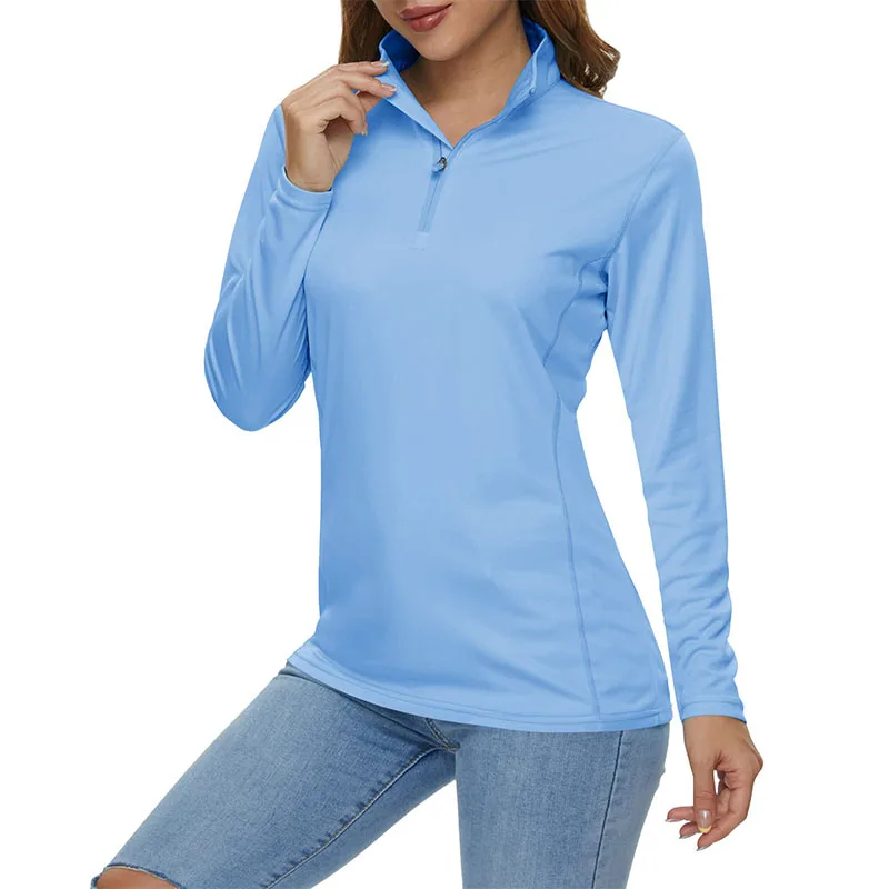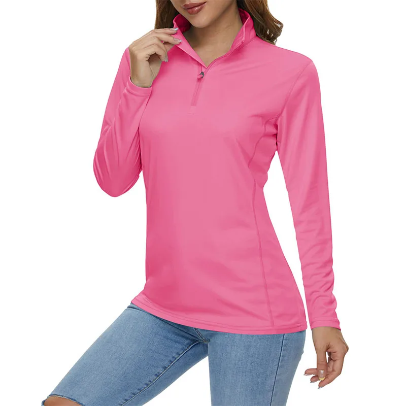 EKLENTSON Women UV Protection T Shirt Zipper Collar Long Sleeve Tops Lightweight Quick Dry Outdoor Climbing Hiking T shirts