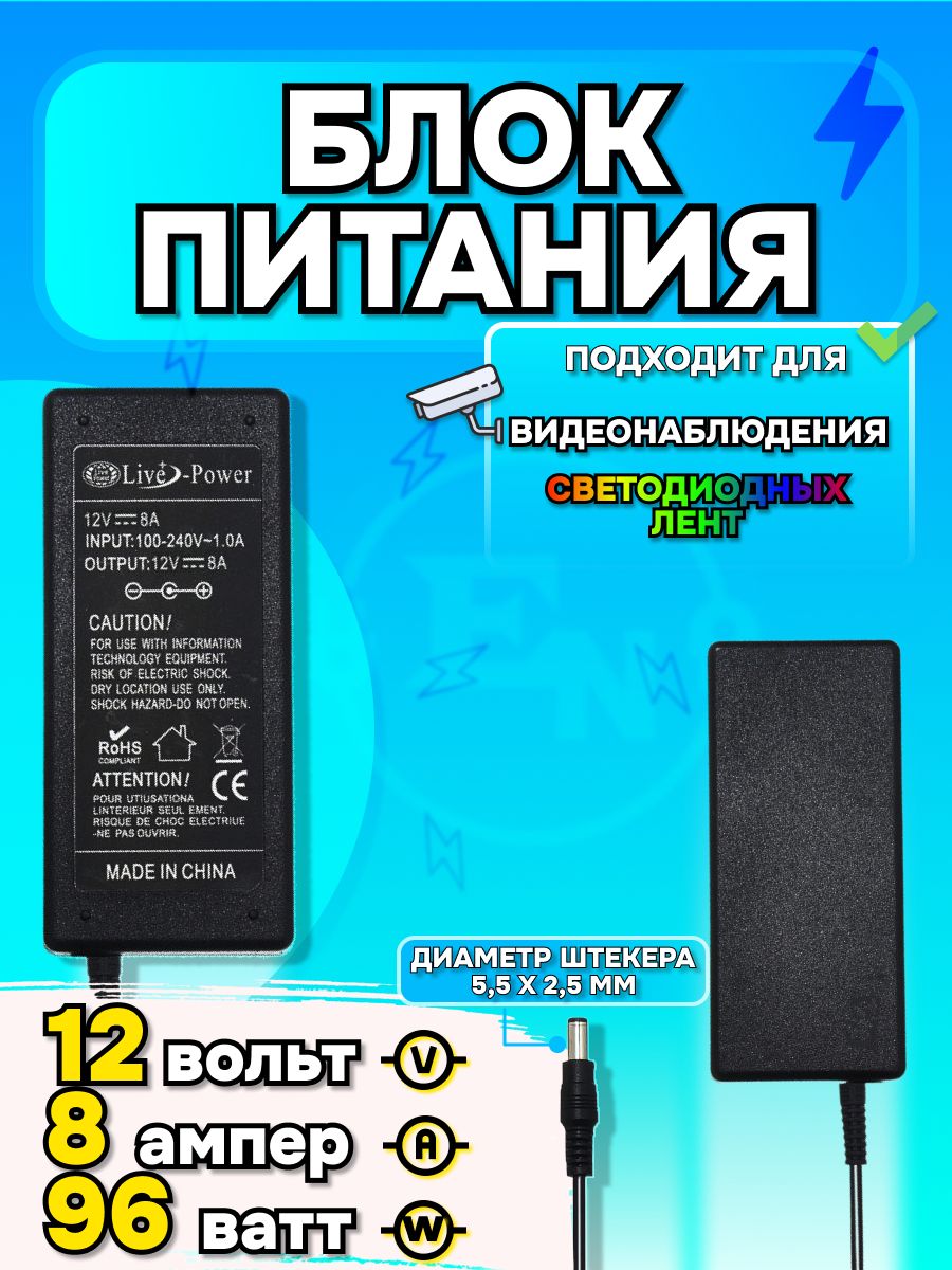 Блокпитаниядлясветодиоднойленты,видеонаблюдения,цифровыхприставок12V8A