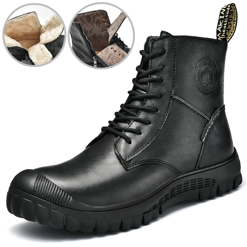 HIKEUP Men's Hiking Shoes Leather Wear resistant Outdoor Boots Padded Martin boots Men Walking Sneakers Men Sport Trekking