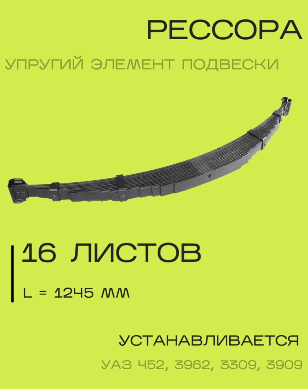 ✅ Рессора УАЗ 452, 3962, 3309, 3909 16 листов (L-1245 мм) - ЧУСОВСКАЯ РЕССОРА арт. 38832912012 - в наличии с быстрой доставкой по всей России 🚚 Отзывы реальных покупателей, фото, характеристики и скидки в интернет-магазине
