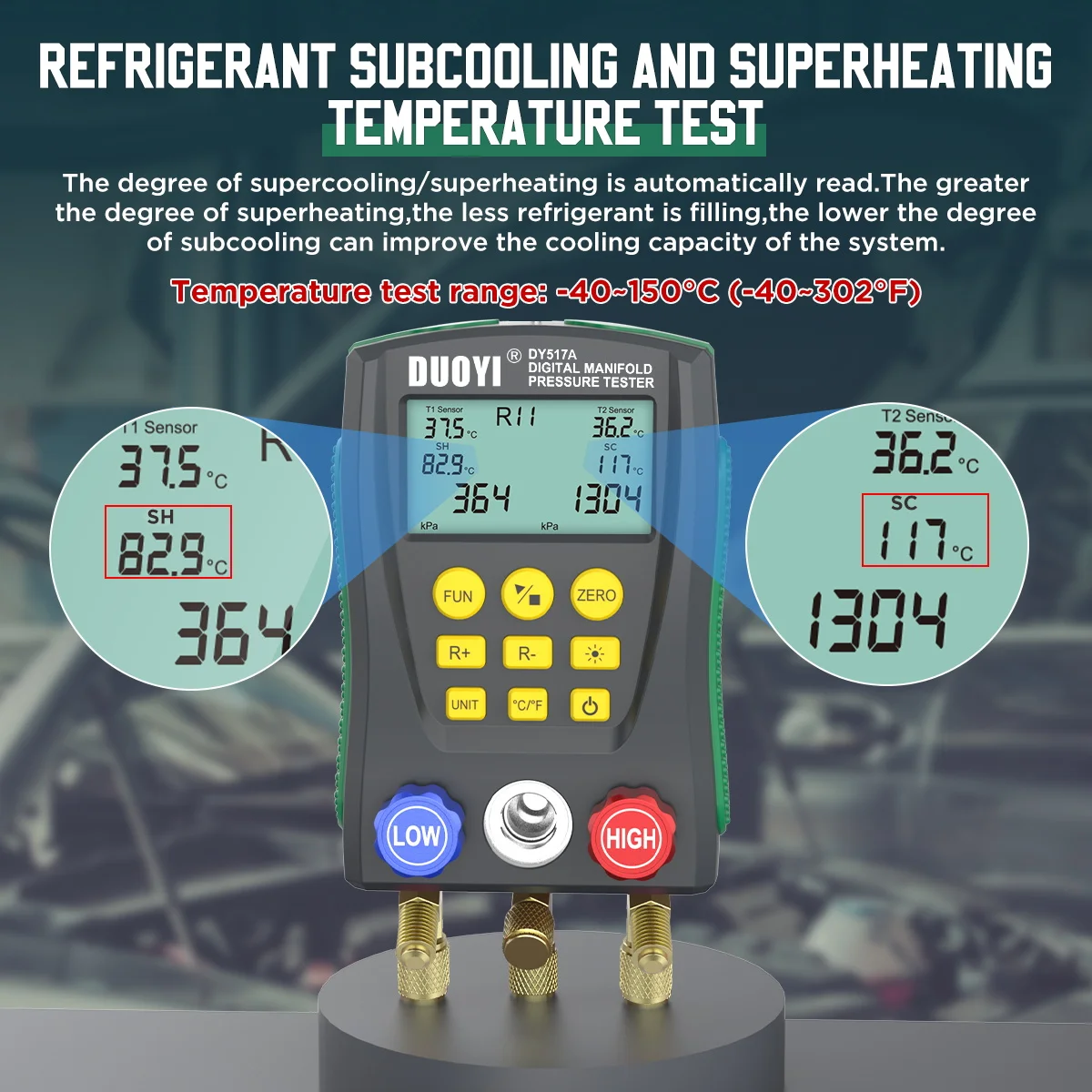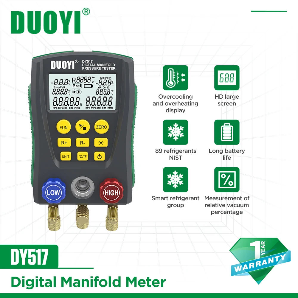Датчик давления DUOYI DY517, цифровой вакуумный измеритель температуры для холодильных систем, кондиционеров, автомобилей и домов