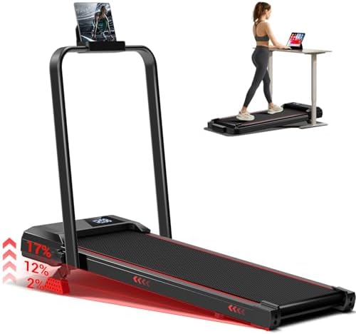 3-in-1 Portable Under Desk Treadmill, 17% Incline Walking Pad Treadmills for Home and Office, Folding Treadmill with 2.5 HP Quiet Brushless, 300 LBS Capacity