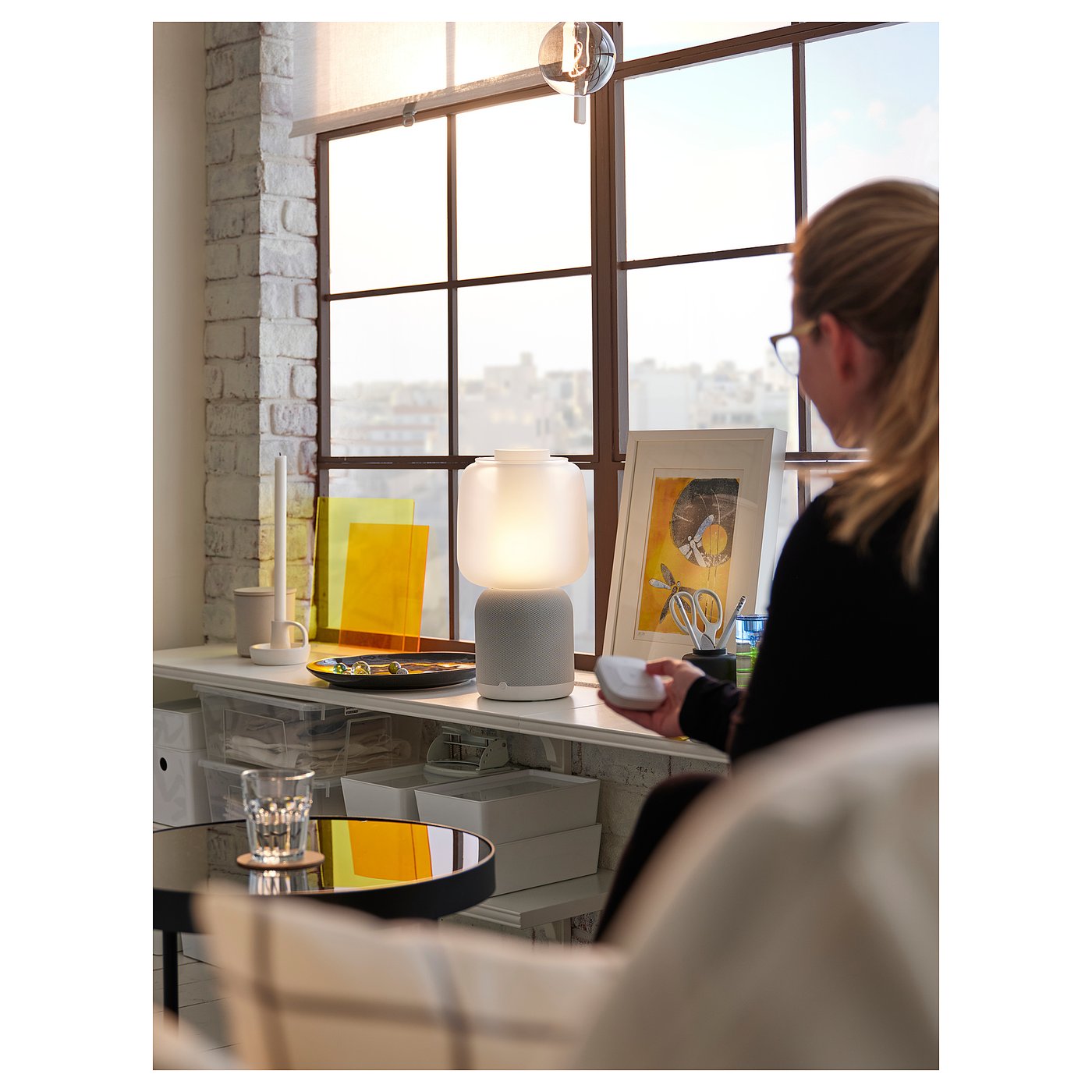 SYMFONISK control remoto audio, Gen 2 Con este mando a distancia puedes controlar todos los altavoces SYMFONISK y Sonos desde la cocina, el dormitorio u otro sitio de tu hogar. El mando a distancia cuenta con dos botones que te permiten activar listas de reproducción personalizadas.