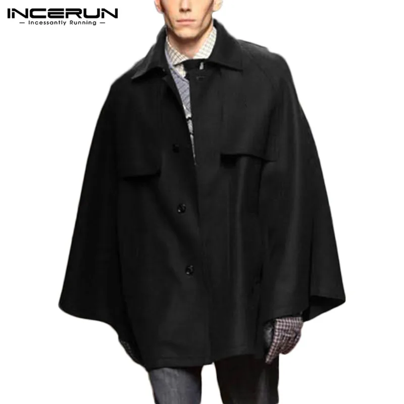 INCERUN Модные Мужские плащ пальто с капюшоном для детей на Цвет свободные накидки с отложным воротником однобортное пальто; Плащ; Уличная одежда шикарные мужские куртки пончо S 5XL|Плащи и тренчи| | АлиЭкспресс