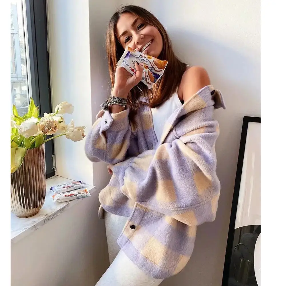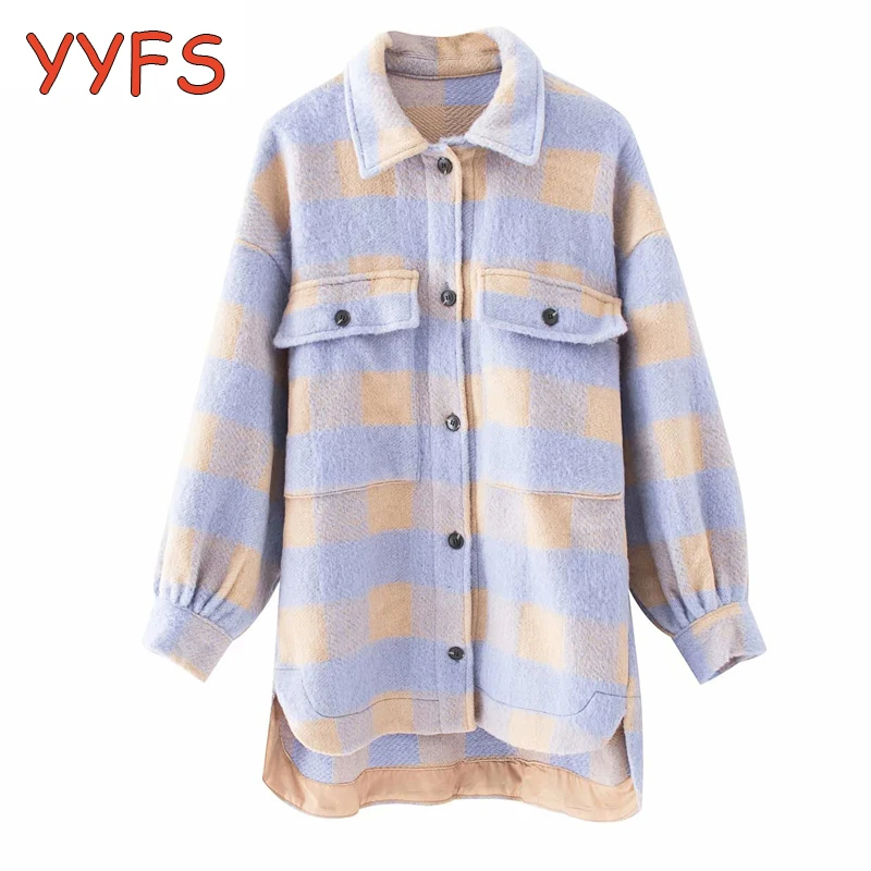 Клетчатая Шерстяная Рубашка, женские куртки с карманами и отложным воротником, куртка большого размера, Женское пальто 2020, милое шикарное пальто для девушек, уличная одежда|Куртки| | АлиЭкспресс