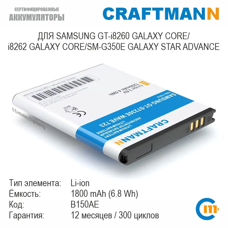 Аккумулятор для Samsung GT i8260 GALAXY CORE/i8262 GALAXY CORE/SM G350E GALAXY STAR ADVANCE (B150AE)