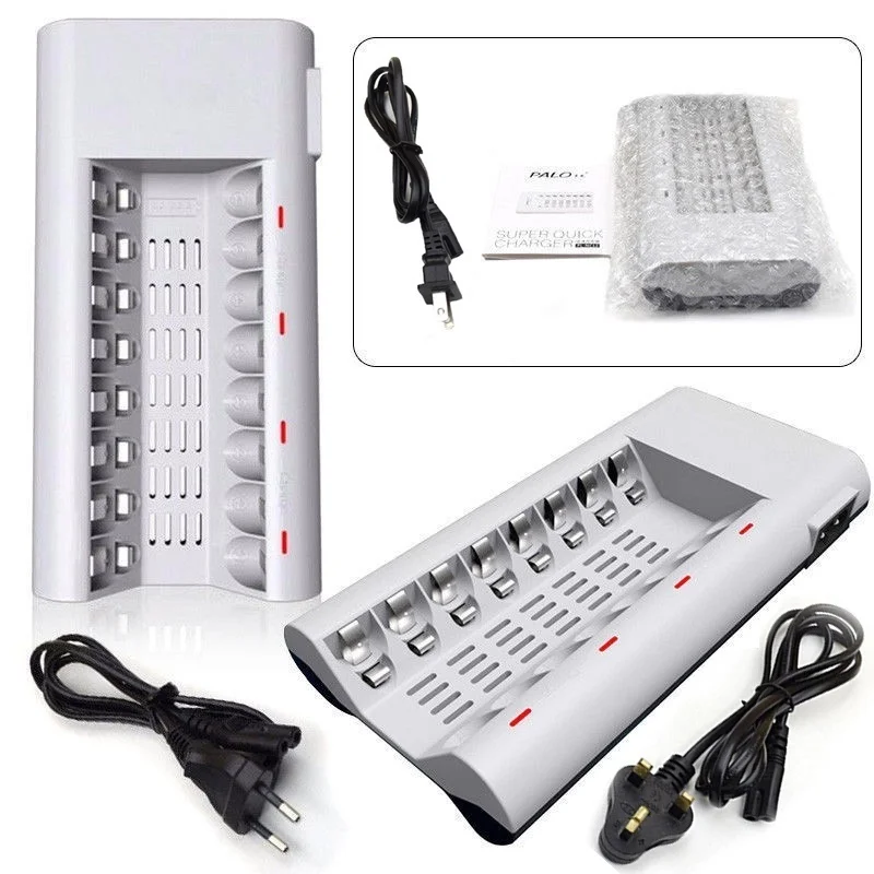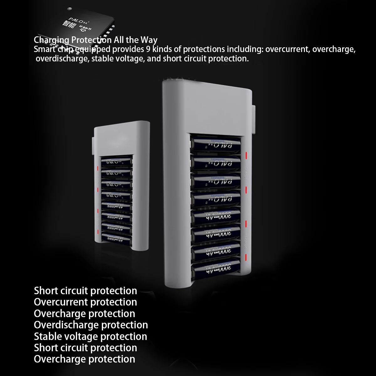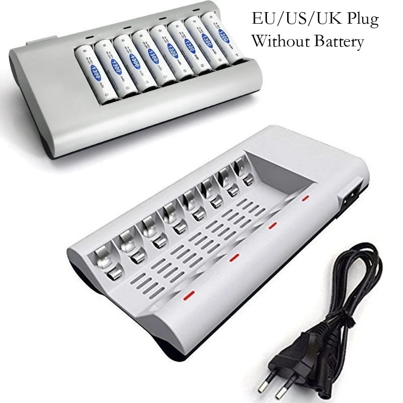 Интеллектуальное зарядное устройство с 8 слотами, таймер со светодиодной подсветкой, управление зарядным устройством для аккумуляторов AA ...