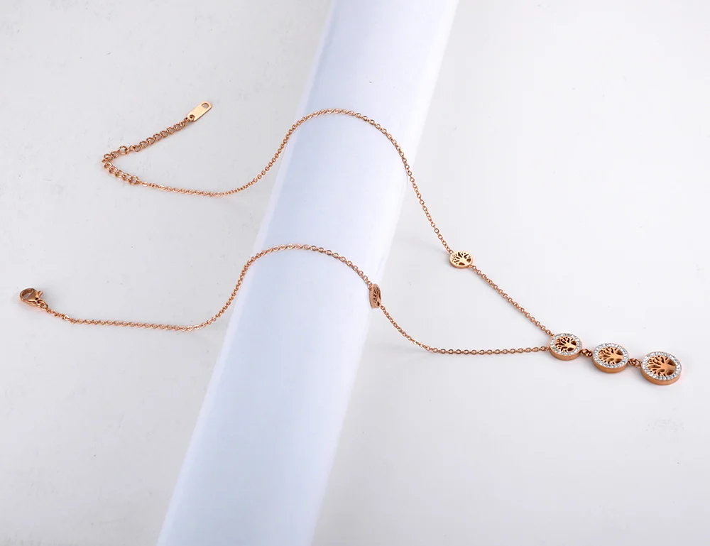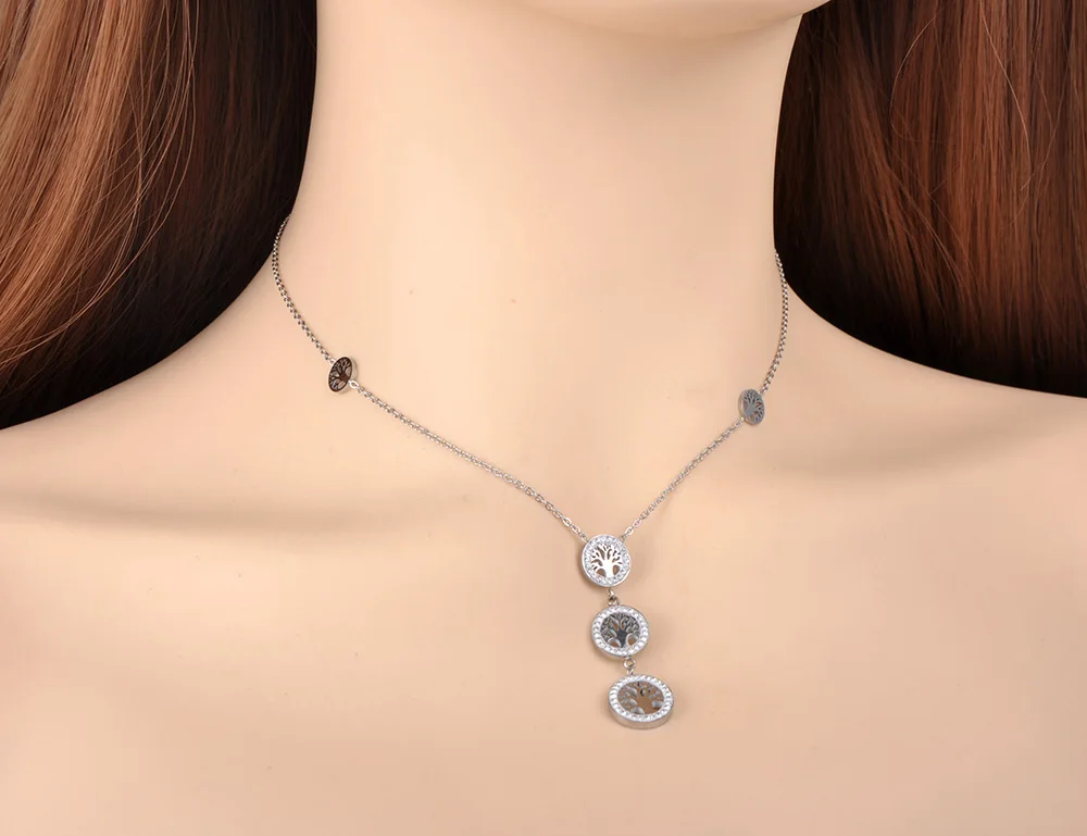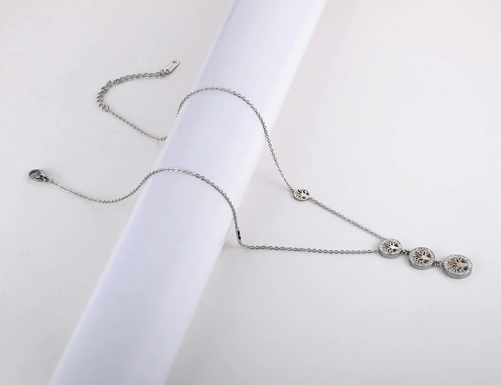 Aenine Originele Ontwerp Rvs Boom Charm Choker Kettingen Bohemen Cz Kristallen Hanger Ketting Voor Vrouwen Meisjes AN20006