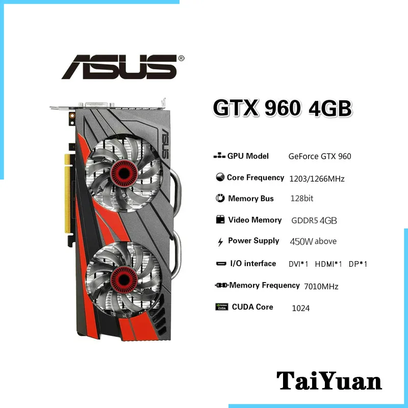 Видеокарта Asus Raphic GTX 960 4 Гб 1050TI 4 Гб 1060 3 ГБ GPU DVI HDMI DP поддержка AMD Intel десктопный процессор Материнская плата, Наслаждайся ✓Бесплатная доставка по всему миру! ✓Предложение ограничено по времени! ✓Удобный возврат!