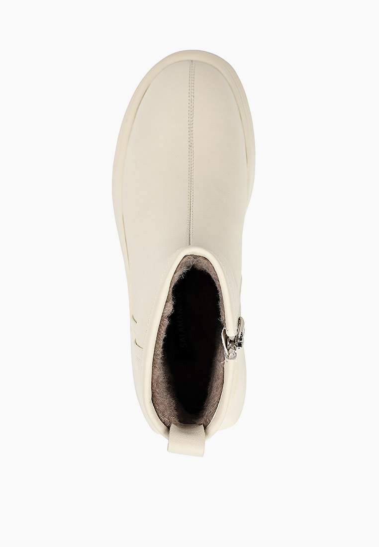 Ботинкивыполненыизнатуральнойкожи.Детали:застежканамолнии,внутренняяподкладкаистелькаизшерсти.АмортизирующаянескользящаяподошваизТЭПлегкаяигибкая,споддержкойстопы.