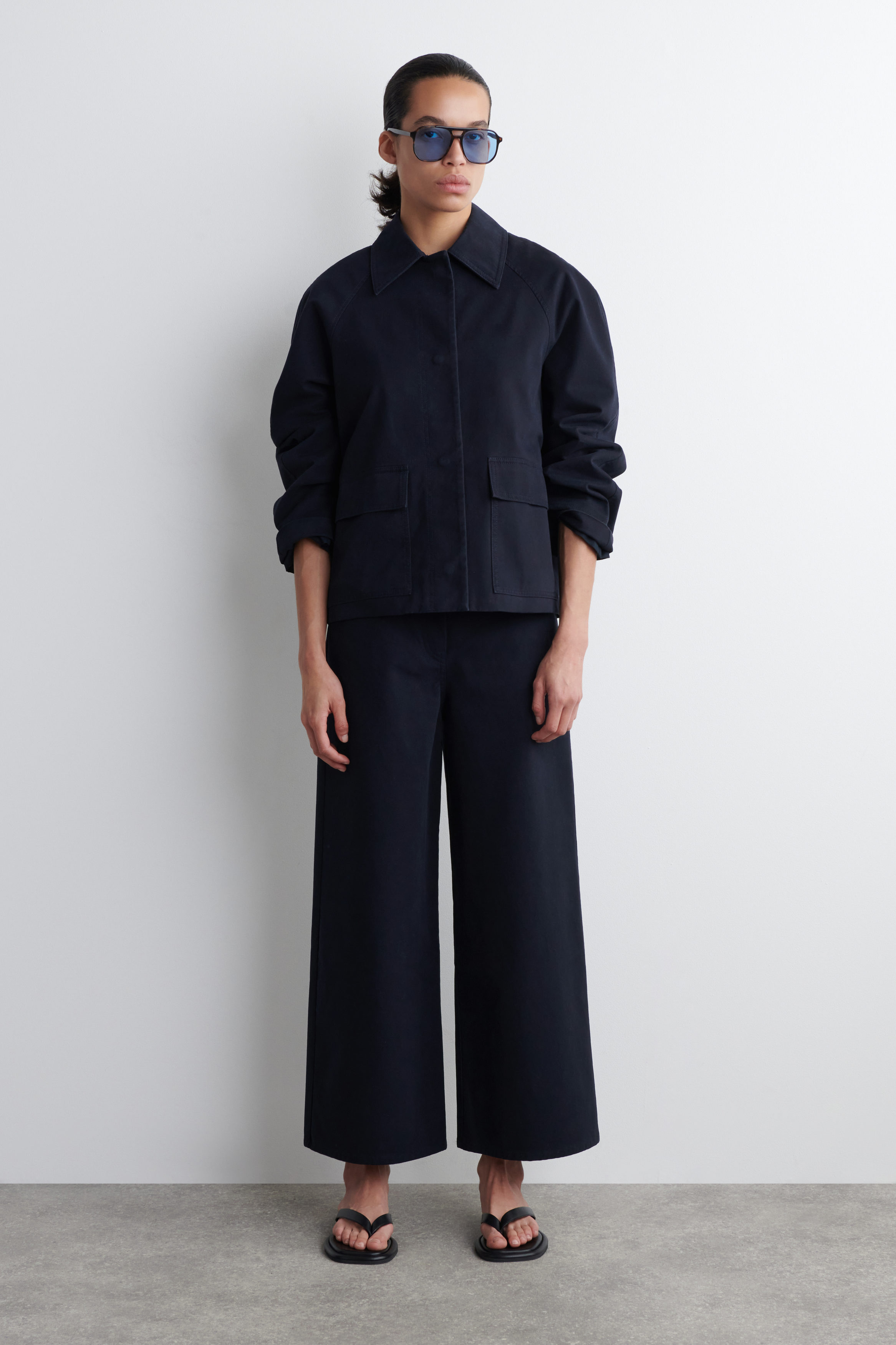 Channellingarefinedtakeonutility,thiscottonjacketisdesignedwithtwoworkwear-inspiredpocketsandaconcealedplacketforacleanfinish.Thewidesleevesandboxy,relaxedshapemakeitaneffortlesslayeringpiece. RelaxedfitButtonclosure Shell:98%Cotton,2%Elastane.Lining:100%Cotton.Excludingtrims/Machinewash BacklengthofsizeSis57.9cm/ModelwearsasizeS