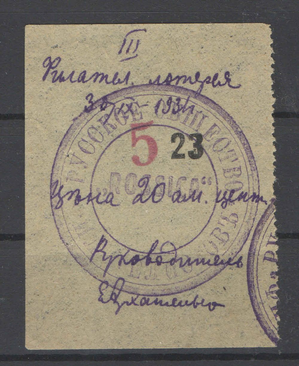1931 г. Уникальный Филателистический Раритет. Фил.лотерея Русского Общества Филателистов "РОССИКА".С подписью создателя и руководителя Е.Архангельского. Билет №23.