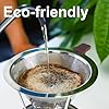 【PREMIUM DOUBLE-LAYER STAINLESS STEEL FILTER】Crafted with 316 stainless steel and 800 mesh, coffee filters ensure optimal extraction for a rich, flavorful cup. Enjoy stable water flow and pure filtration, eliminating residue for the perfect brew every time! 【PORTABLE AND VERSATILE COFFEE FILTER】Ideal for travel, camping, or business trips, this stainless steel coffee filter cone fits most mugs and coffee makers like Chemex and Hario V60. Enjoy rich coffee anywhere with its detachable stand design! 【EASY CLEANUP IN UNDER 60 SECONDS】Cleaning your stainless steel coffee filter is a breeze—simply rinse with running water right after use. Enjoy your coffee without worrying about stubborn grounds; a quick rinse ensures hassle-free maintenance! 【ECONOMIC COFFEE FILTER】Ditch costly disposable filters! Our reusable stainless steel coffee filter can brew over 500 cups, reducing waste and saving you money. Enjoy great coffee while being kind to the planet—less paper, more trees! 【ENHANCED COFFEE FLAVOR EXPERIENCE】Our stainless steel coffee filter maximizes contact between coffee grounds and water, boosting extraction efficiency. Enjoy a richer, more flavorful cup every time, elevating your coffee ritual to new heights!