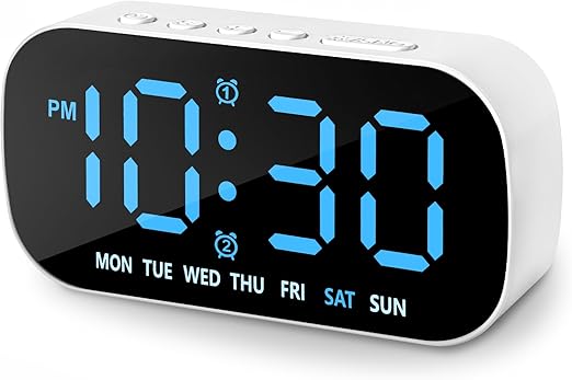 Amazon.com: Small Digital Alarm Clocks for Bedrooms, 5 Levels Brightness Dual Alarm 12/24Hr and Snooze Simple Large Numbers Plug in Loud Desk Digital Clock for Heavy Sleepers Adults Teens (Blue) : Home & Kitchen