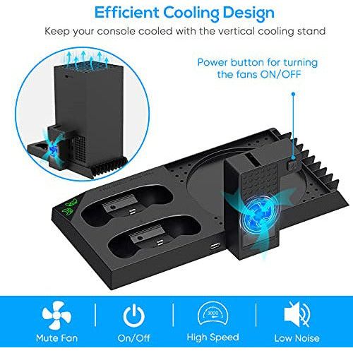 FYOUNGCoolingStandand1400mAhBatteriesCompatiblewithXboxSeriesXAccessories,ControllerChargingStationwithCoolingFan&RechargeableBatt