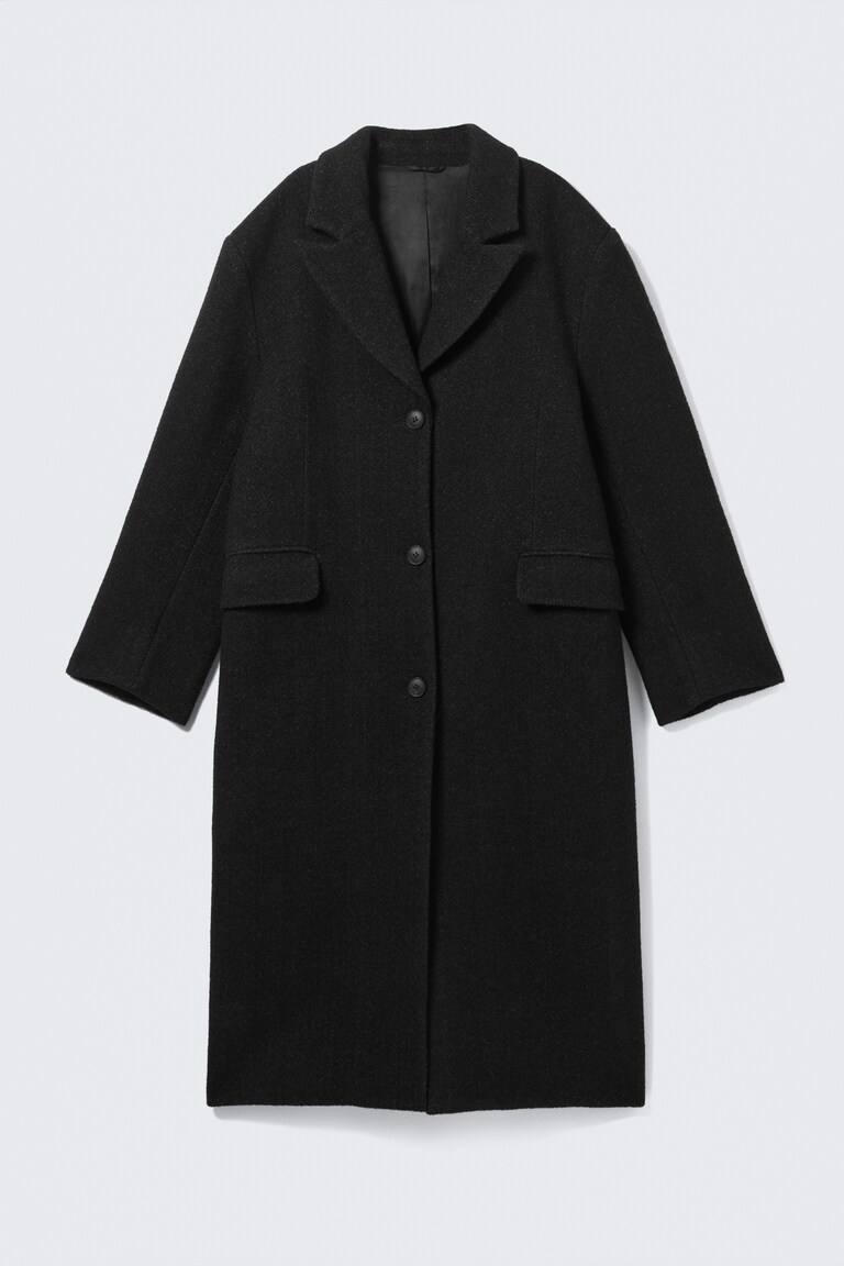 Cemanteaulongoversizeàsimpleboutonnageestconfectionnédansunmélangechauddelainerecyclée,depolyesterrecycléetd’alpaga.IlpossèdeuncolàreversenV,desépaulestombantesmatelasséesetunefentehauteaudospourfaciliterlesmouvements.Ilestdotédepochespassepoiléesdoubles,deboutonssurledevantetd’unedoublureenviscosedouce.
