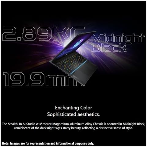 MSI Stealth 18 AI Studio Gaming Laptop, Intel Ultra 9-185H, 64 GB DDR5 RAM, 4 TB + 4 TB PCle SSD, 18” QHD+ (2560x1600) 240Hz, Nvidia G-Force RTX 4080, Backlit Keyboard, W11 Pro