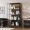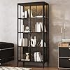 Glass Cabinet with Lights - This display cabinet features a light strip, offering 3 color options: warm light, cool light and natural light. The soft lighting can highlight your collectibles while create a relaxing vibe. Glass design is deal for adding functionality and artistic flair to your home decor. Ample Storage - The modern cabinet with glass doors possesses 4-tier glass shelves. Each shelf measures 29.9” wide, offering ample space to store collections or daily items. 3-side clear glass design would give a 180 degree view for showcasing. Versatile - This black storage cabinet would be a beautiful storage solution for home. Crossing metal frame and clean glass panels embody modern aesthetics. Decorative handles look elegant and easy to grip. You can use it as file cabinet, display case, bookshelf, in living room, home office, hallway. Material & Structure - The sideboard buffet cabinet is made of particle boards, metal frame and tempered glass, sturdy for long-term use. It features anti-tipping devices and metal legs, enhancing stability. Also, each leg is equipped with adjustable feet to accommodate uneven floor. Dimensions: 31.5”W x 15.7”D x 70.9”H. Installation Tips - Our glass storage cabinet requires assembly. It will be packed in 2 boxes, including a detailed manual and some labeled parts. Please make sure all components are well received and intact before installation and follow the instruction carefully. Note: Boxes may not arrive at the same time, please wait patiently.