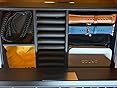 Real glass too, high quality display case. Good value for the money. The watch case fits bands for wrist sizes of about 7 inches in diameter very snugly. If your wrist size is smaller than that, you won’t be able to close the watch while storing it. My wrist is exactly 7.25 inches in diameter and the watches fit perfect with the bands closed. The watch holder is a cushion so ideally you can probably get your watches to fit of a smaller size, but I don’t think not too much smaller. You might be able to get a 7” band to close on it. Otherwise, storing a watch open is possible, it’s just that the band lays for the length of the port. I included a picture of a watch being stored that has an open band so you can see how it looks. The accessory tray is nice. I can store my frequently used cuff links, as I already have another display case by Lifomenz for my cuff links that matches this case and I can store other loose items such as my watch links, watch accessories, wallet accessories and other things that I like to change out on a daily basis. The accessory drawer is not on rails. It simply slides in and out and can be removed by simply sliding the drawer all the way out. If you’re a man and need to also find a place for your tie clips, I recommend you find a display case for a layered earring jewelry box. The ones they use to store long earrings are perfect for storing and displaying tie clips. If you also have a lot of cuff links, the Lifomenz cuff link display cases that matches this case is a perfect addition. The cost of this case is definitely in line, and even cheaper, than other high quality display cases that have less options. This is a good buy with good options and a very nice high grade look.