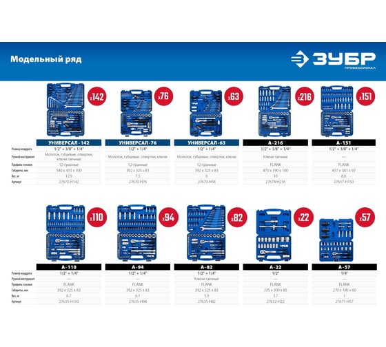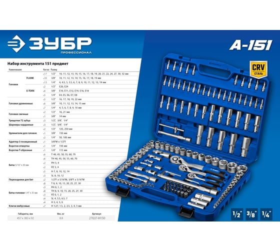 УниверсальныйнаборинструментаЗУБРПрофессионалА-110110предметов27635-H110_z01