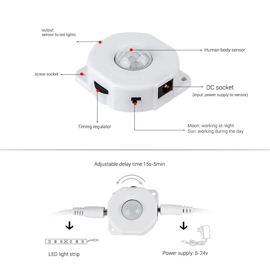 Buy 5V 12V 24V Human Body Sensor PIR Motion Movement Detector Activated Switch Automatic ON OFF Home Corridor LED Strip Light Switch at Aliexpress for . Find more 13, 200330187 and products. Enjoy ✓Free Shipping Worldwide! ✓Limited Time Sale ✓Easy Return.