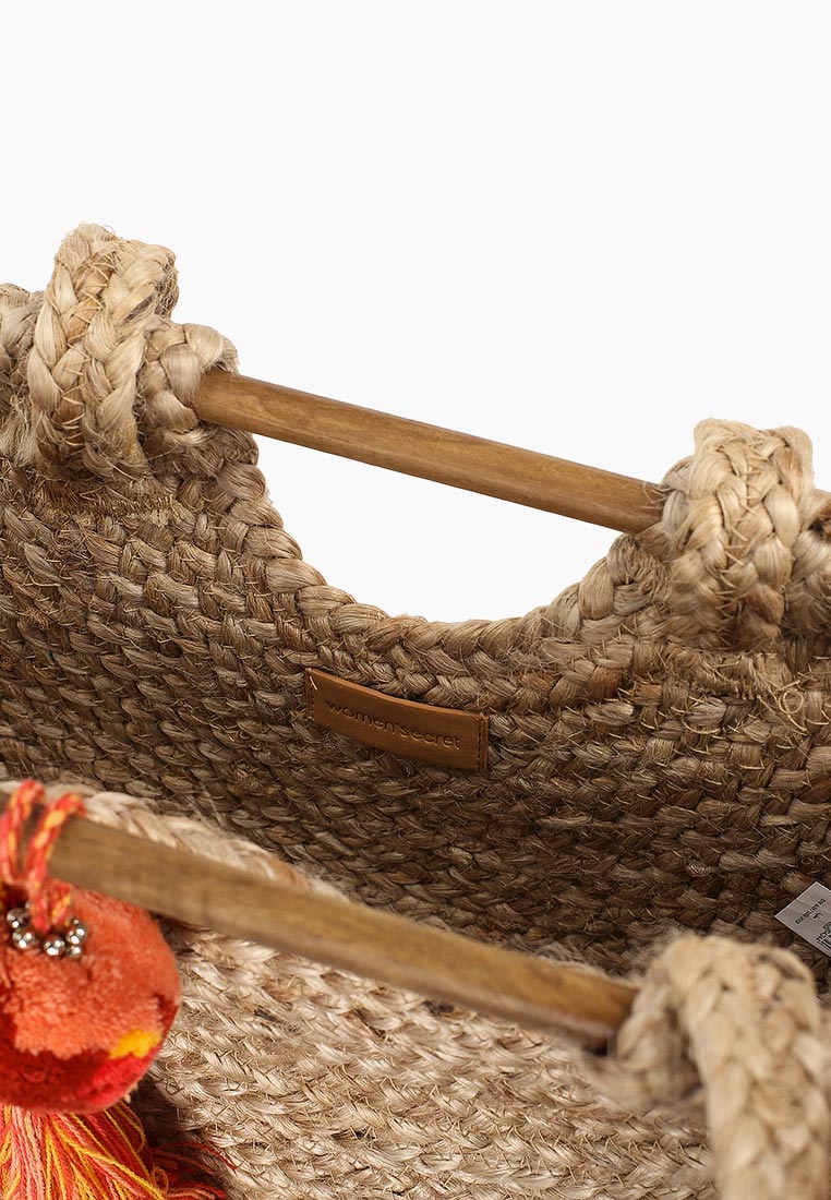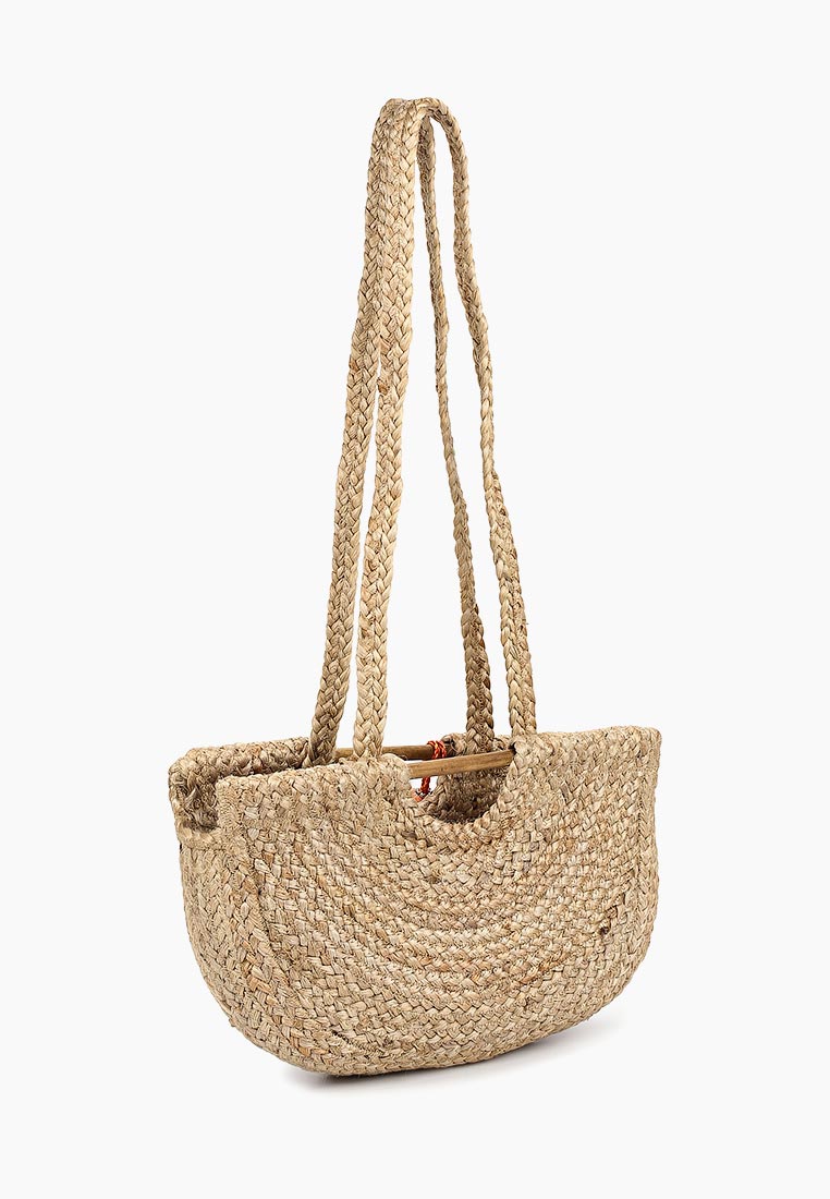 Сумкавыполненаизджутовоговолокна.Детали:беззастежки,1отделение,деревянныеручки.