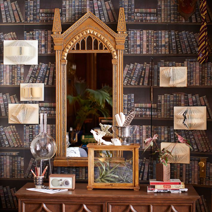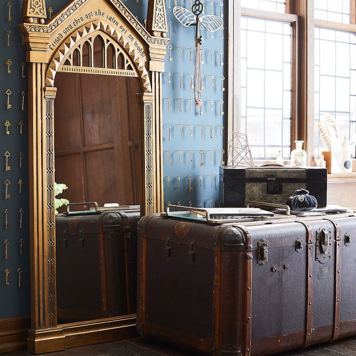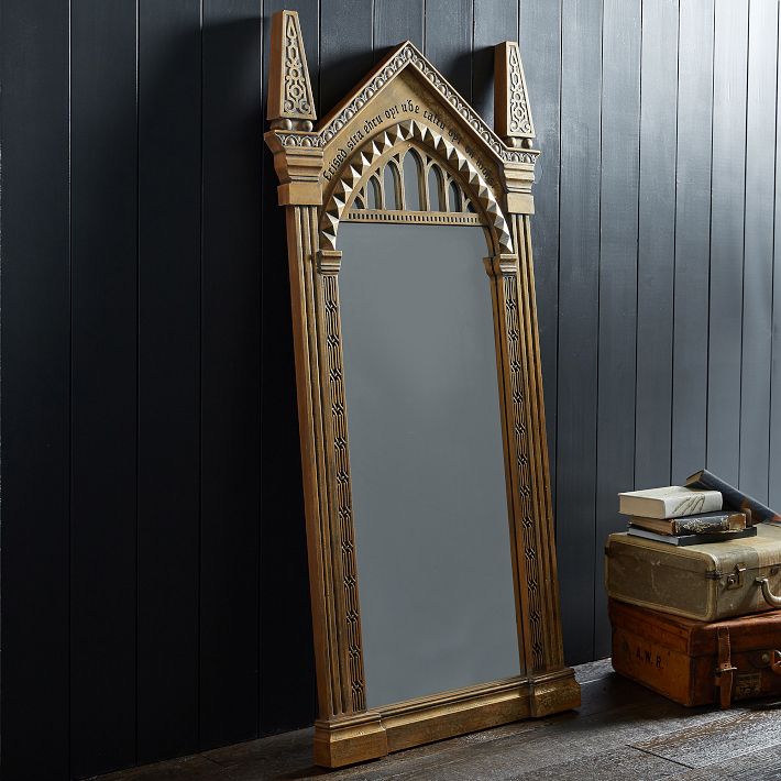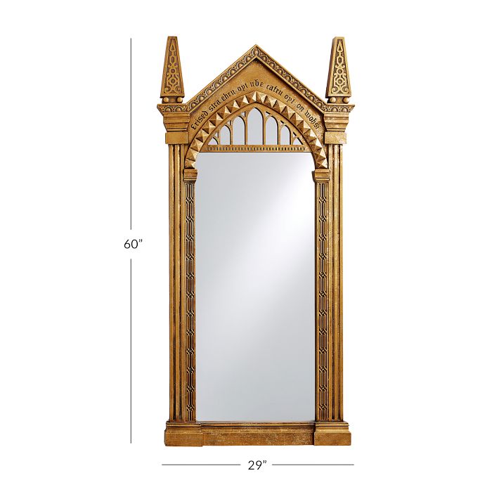 <p>RevealthedeepestdesiresofyourheartbygazingintotheMirrorofErised.ThisluxegildedHarryPottermirroriscraftedofsturdyMDFandhand-appliedforatrue-to-seriesfinishinglook.</p> <ul> <li>MadeofMDF,(mediumdensityfiberboard)withaglassmirror.</li> <li>D-ringmountinghardwareincluded.</li> <li>Thismirrorhangsbothwayswithourwallhangingandfloorsecuringkits.</li> <li>Imported.</li> </ul> <p>WIZARDINGWORLDandallrelatedtrademarks,characters,names,andindicaare©&TMWarnerBros.EntertainmentInc.PublishingRights©JKR.(s19)</p>