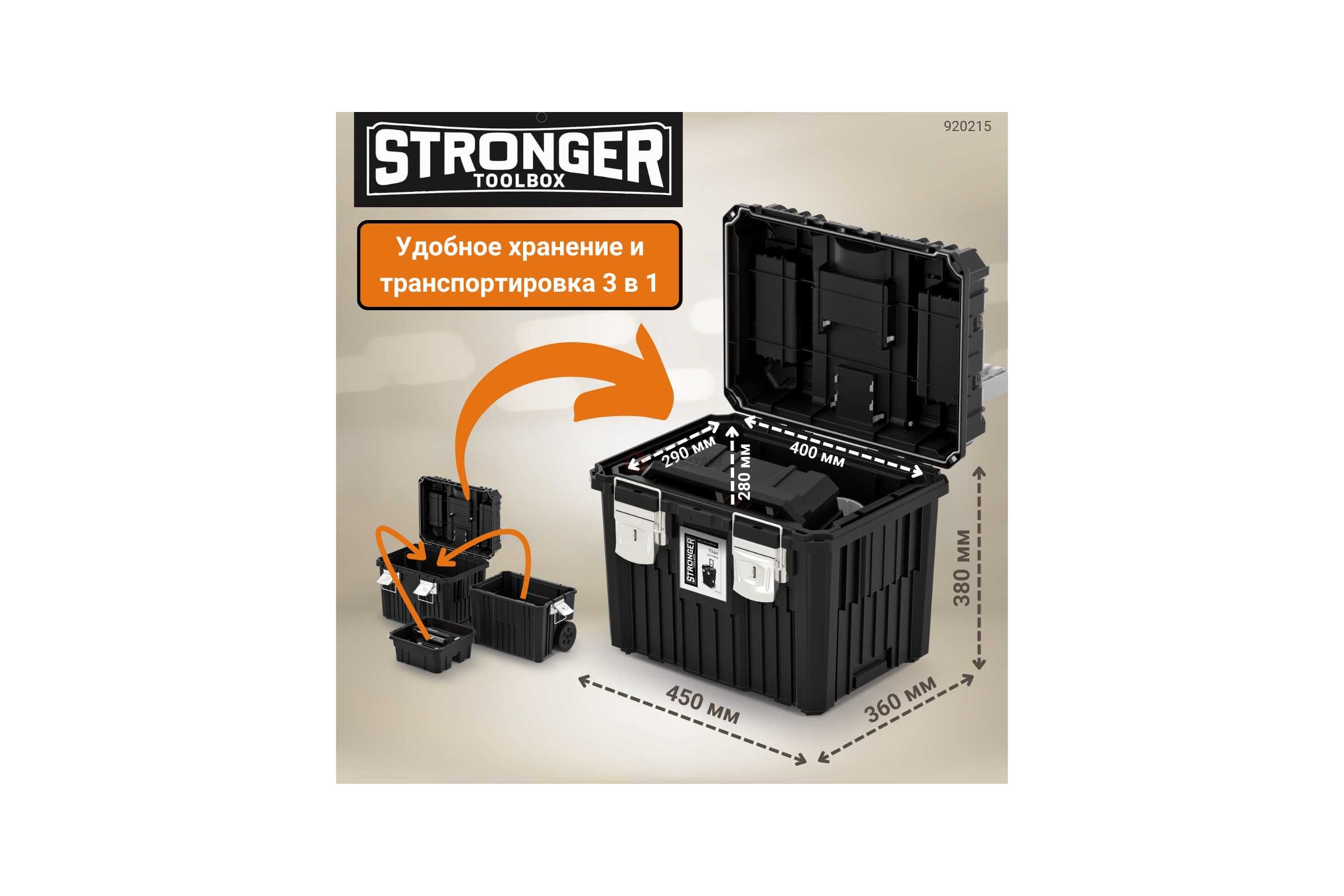 МырадыпредставитьвамвместительныйиудобныйящикдляинструментовнаколесахStrongerразмером45x36x64см.Этотящикстанетнезаменимымрешениемкакдляпрофессионалов,такидлялюбителей,которыеценятпорядокнарабочемместе.Благодаряпродуманнойконструкциииувеличеннойвместимости,внемлегкоразместятсялюбыеинструменты–отмелкогоручногодокрупногоэлектроинструмента.Удобныевнутренниеотделенияисъемныеконтейнерыпозволяютсистематизироватьсодержимое,чтоделаетпоискнужногопредметабыстрымипростым.Прочнаяконструкциякорпусаизармированнойполимернойсмесиобеспечиваетвысокуюустойчивостькизносудажеприинтенсивнойэксплуатациивсложныхусловиях.Колеса,покрытыеэластомером,искладнаяручкаделаютперемещениетяжелогоинструменталегкимиудобным,превращаяящиквмобильнуюинструментальнуютележку.Высокаянадежностьибезопасностьхранениядостигаютсязасчетпрочнойсистемызапирания.Этотящикотличаетсягерметичнойпрокладкой,котораязащищаетсодержимоеотпылиивлаги,чтоособенноважнодляработывсложныхусловиях.Дверучки–дляпереноскиитранспортировки–добавляютудобстваприиспользовании,апрозрачнаякрышкаорганайзеровизпрочногополикарбонатапомогаетбыстроувидеть,чтонаходитсявнутри.Ящикидеальноподходитдляиспользованиявгараже,мастерскойилинастроительнойплощадке.Организуйтерабочийпроцессэффективно,ивсенеобходимыеинструментывсегдабудутподрукой.